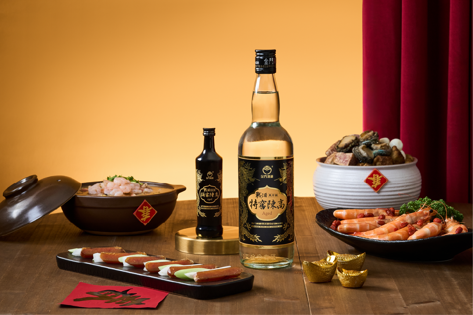 象徵奔馳好運的金馬年即將到來,金門酒廠攜手味丹企業推出金奢級年節好禮,包含國際烈酒競賽「金牌三連霸」的戰酒黑金龍,以及深受行家推崇,以厚實有勁酒韻著稱的特窖陳高七年醇等,多款好禮一次到位,送禮自用都能展現品味,面子裡子通通滿分。